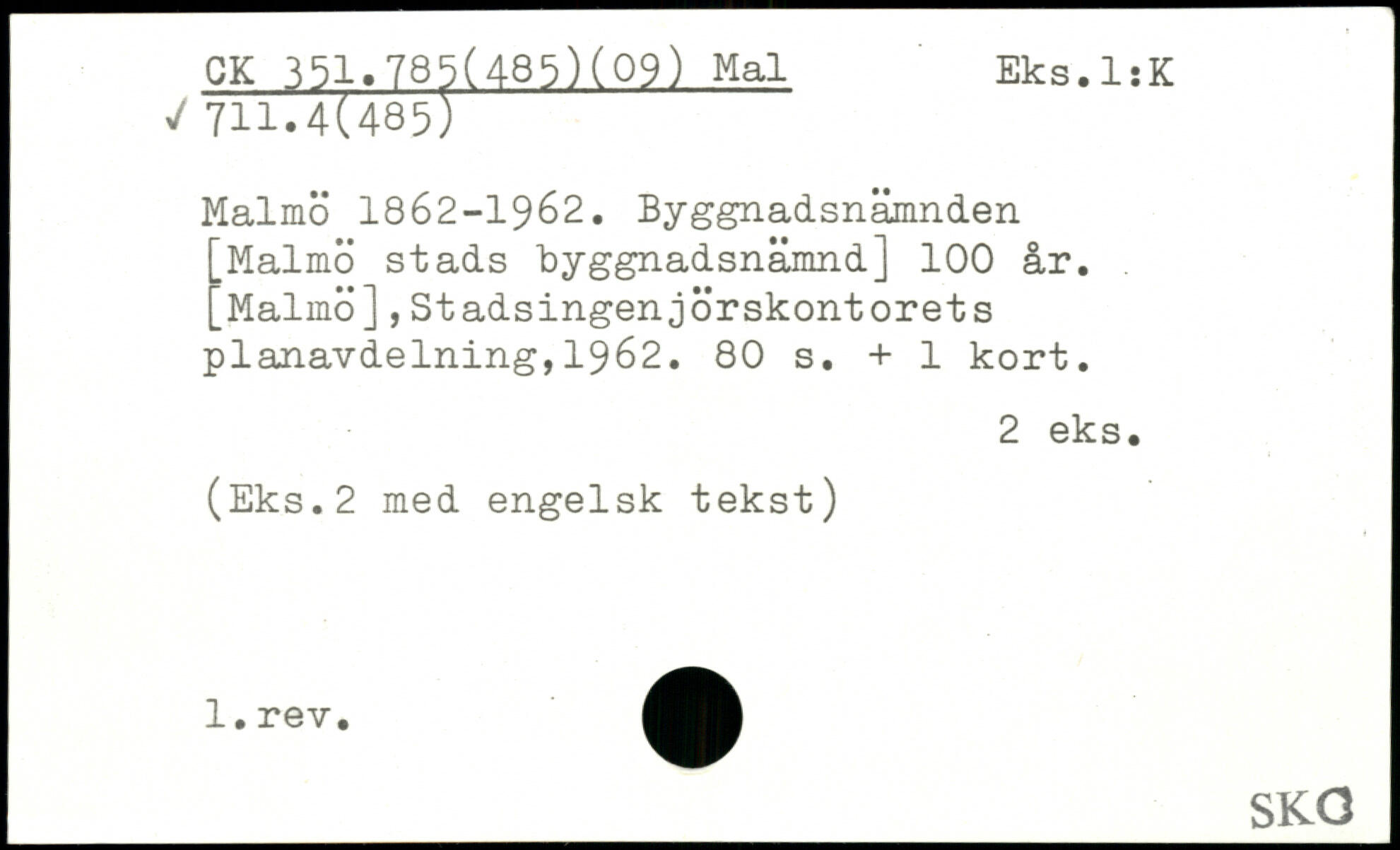 Malmö 1862-1962. Byggnadsnämnden [Malmö stads byggnadsnämnd] 100 år.