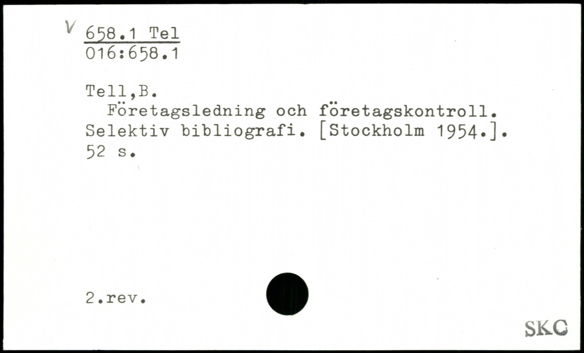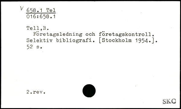 Företagsledning och företagskontroll. Selektiv bibliografi.