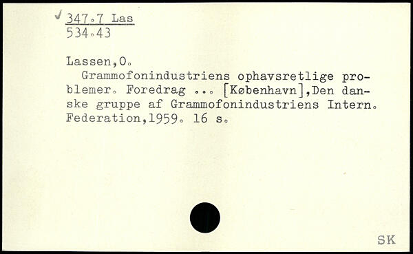 Grammofonindustriens ophavsretlige problemer, Foredrag ...