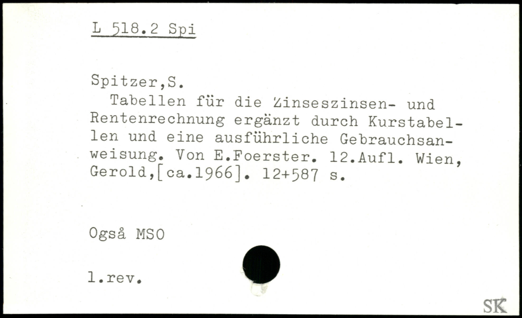Tabellen für die Zinseszinsen- und Rentenrechnung ergänzt durch Kurstabellen und eine ausführliche Gebrauchsanweisung. Von E.Foerster.