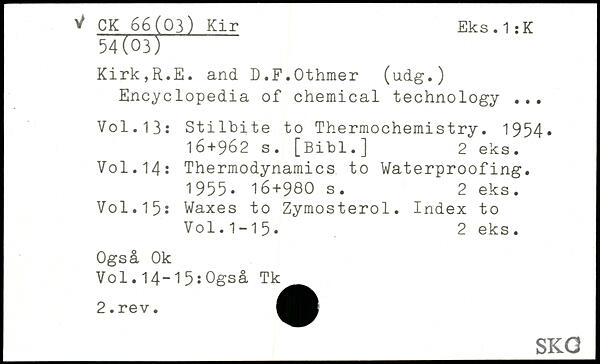 Encyclopedia of chemical technology ...