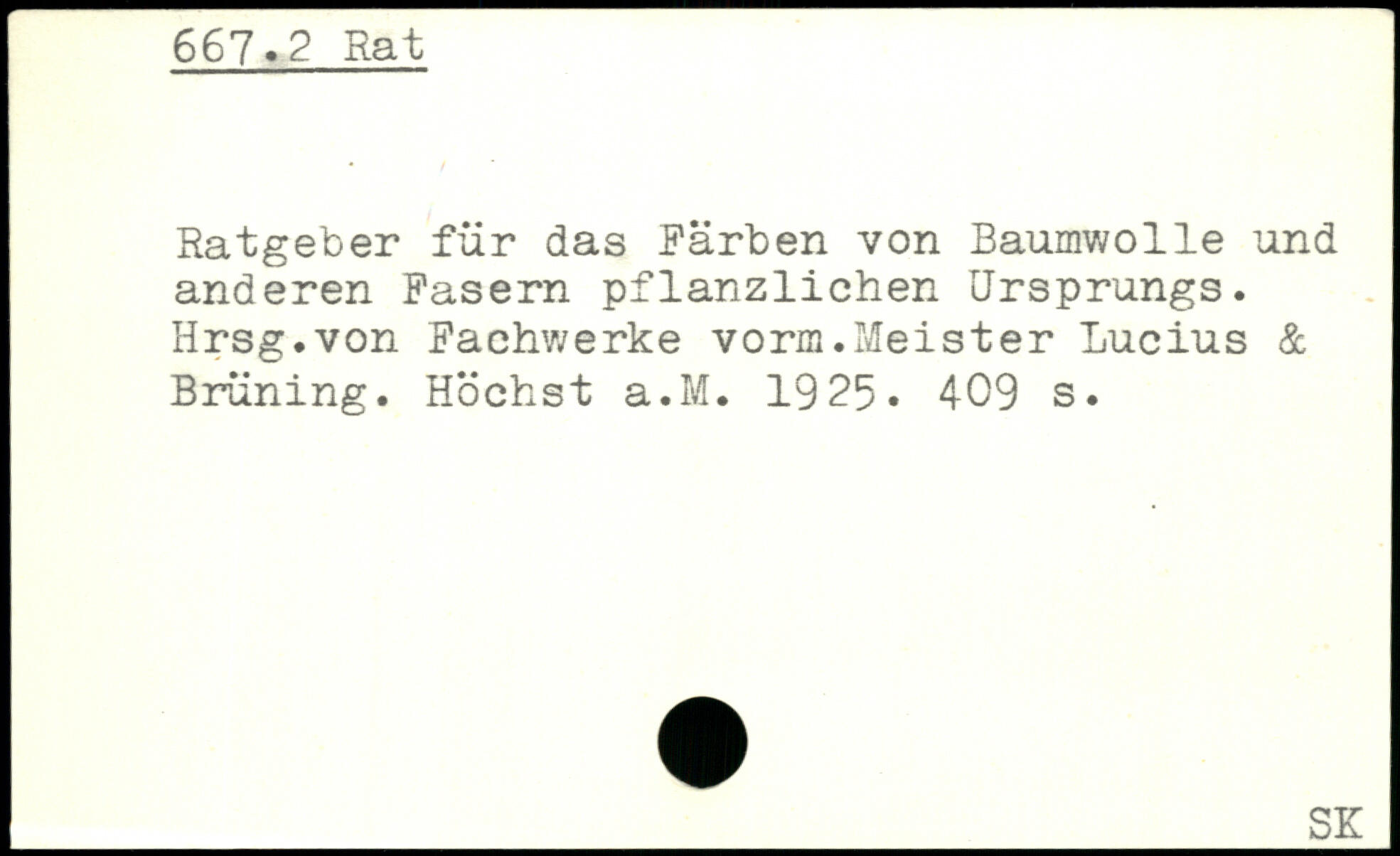 Ratgeber für das Färben von Baumwolle und anderen Fasern pflanzlichen Ursprungs. Hrsg.von Faehwerke vorm.Meister Lucius & Brüning. Höchst a.M. 1925.