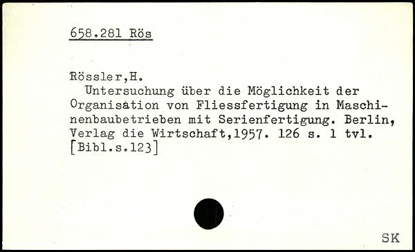 Untersuchung über die Möglichkeit der Organisation von Fliessfertigung in Maschinenbaubetrieben mit Serienfertigung.