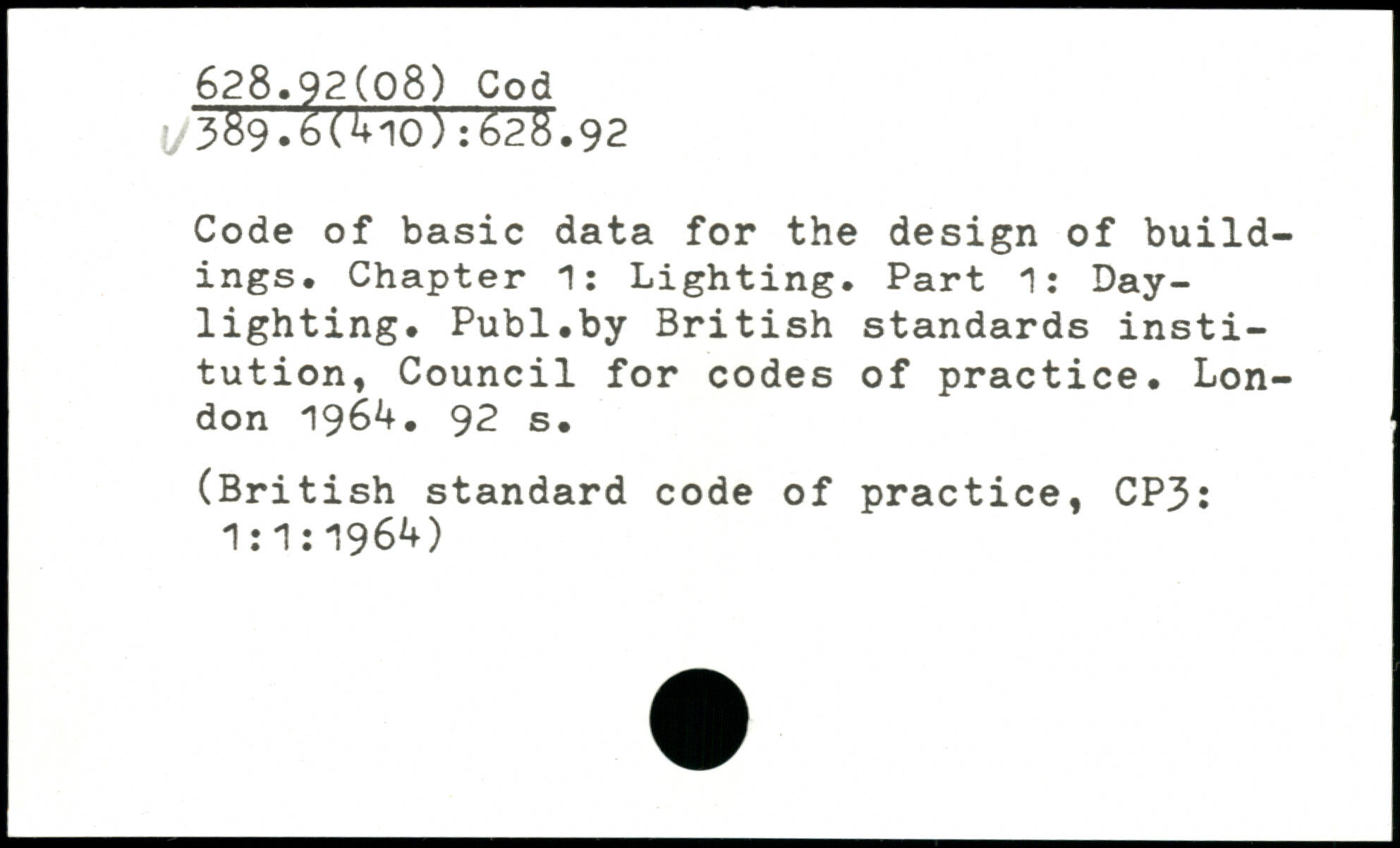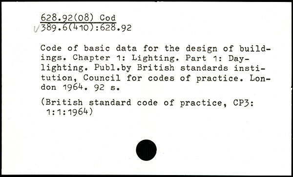 Code of basic data for the design of buildings. Chapter 1: Lighting. Part 1: Daylighting.
