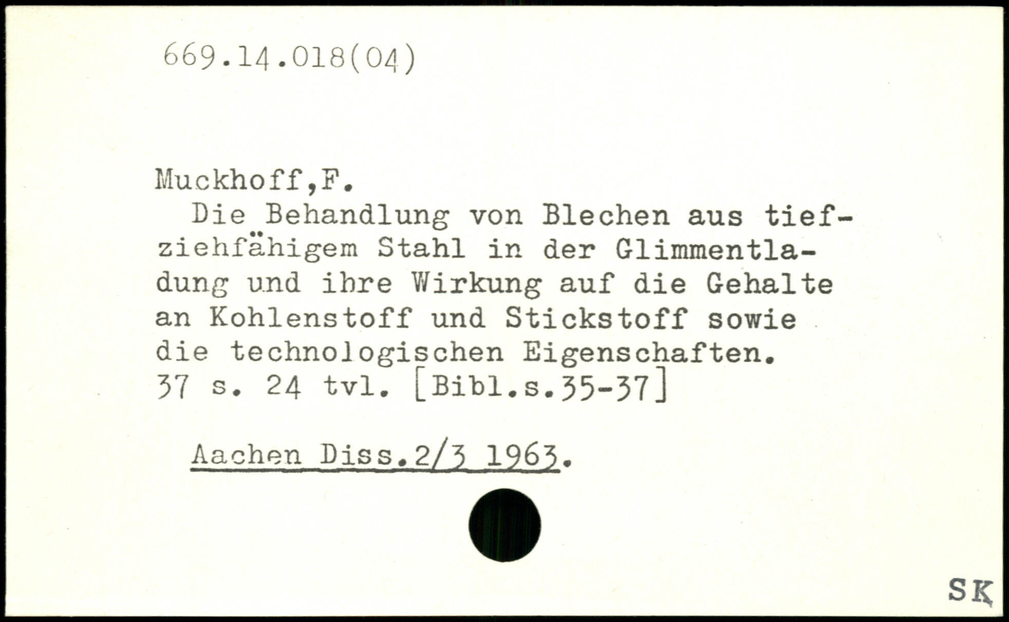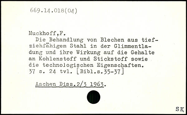 Die Behandlung von Blechen aus tief-ziehfähigem Stahl in der Glimmentladung und ihre Wirkung auf die Gehalte an Kohlenstoff und Stickstoff sowie die technologischen Eigenschaften.