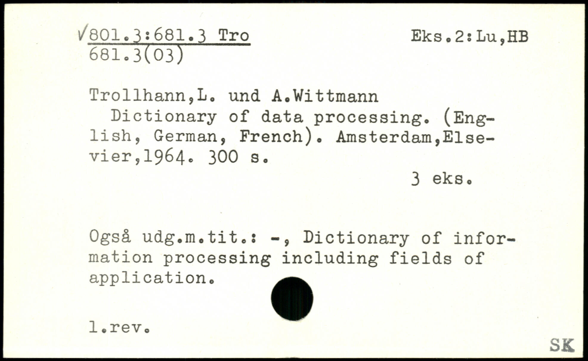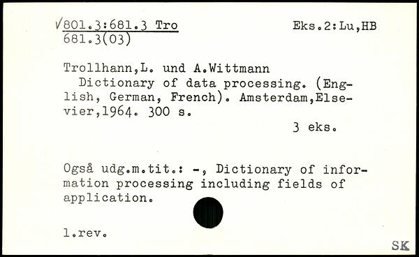 Trollhann,L, und A.Wittmann Dictionary of data processing. (English, German, French).