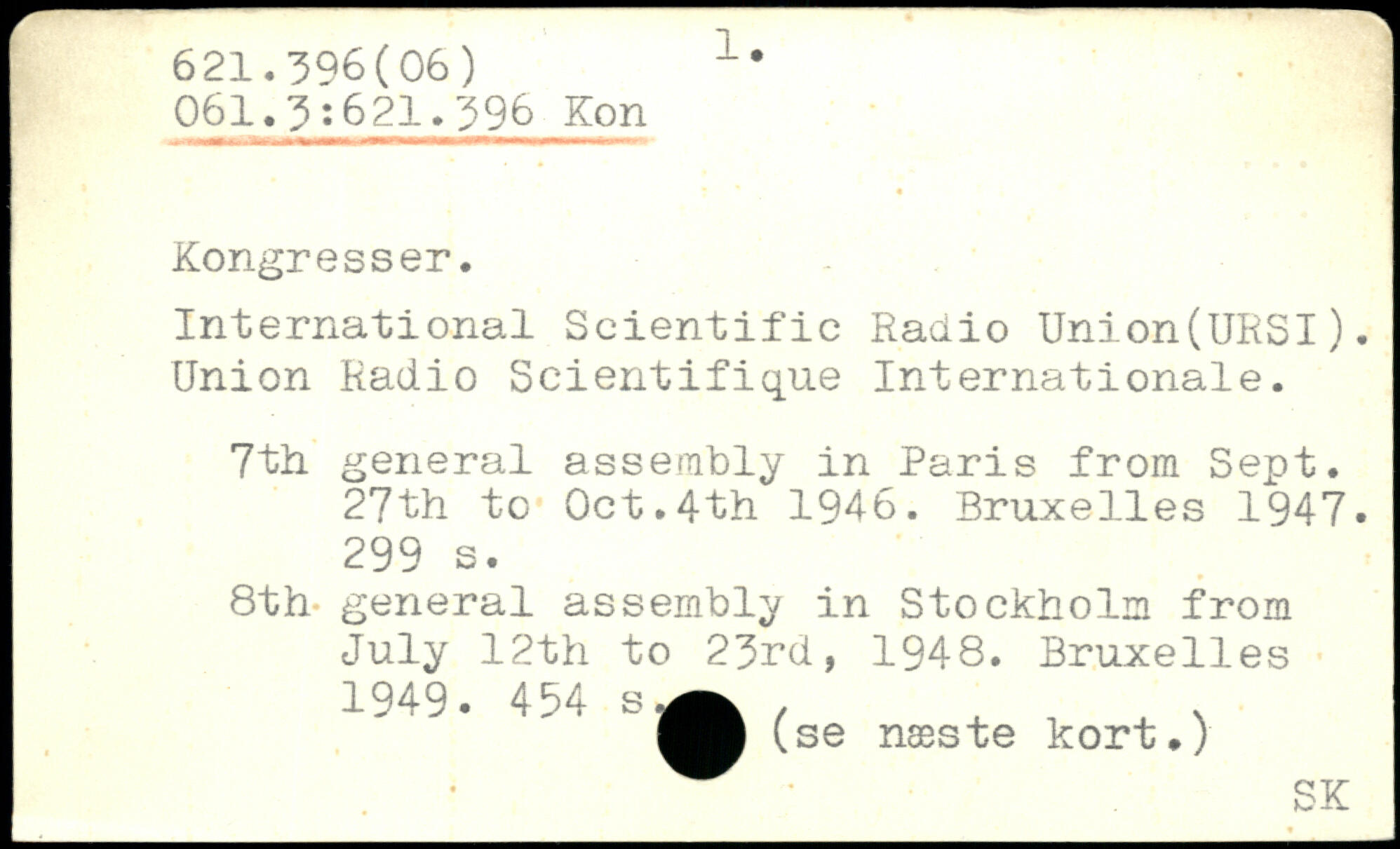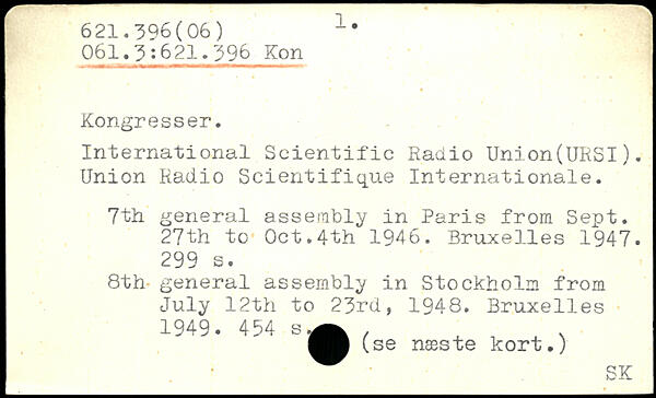 International Scientific Radio Union(URSI). Union Radio Scientifique Internationale. 7th general assembly in Paris from Sept. 27th to Oct.4th 1946.