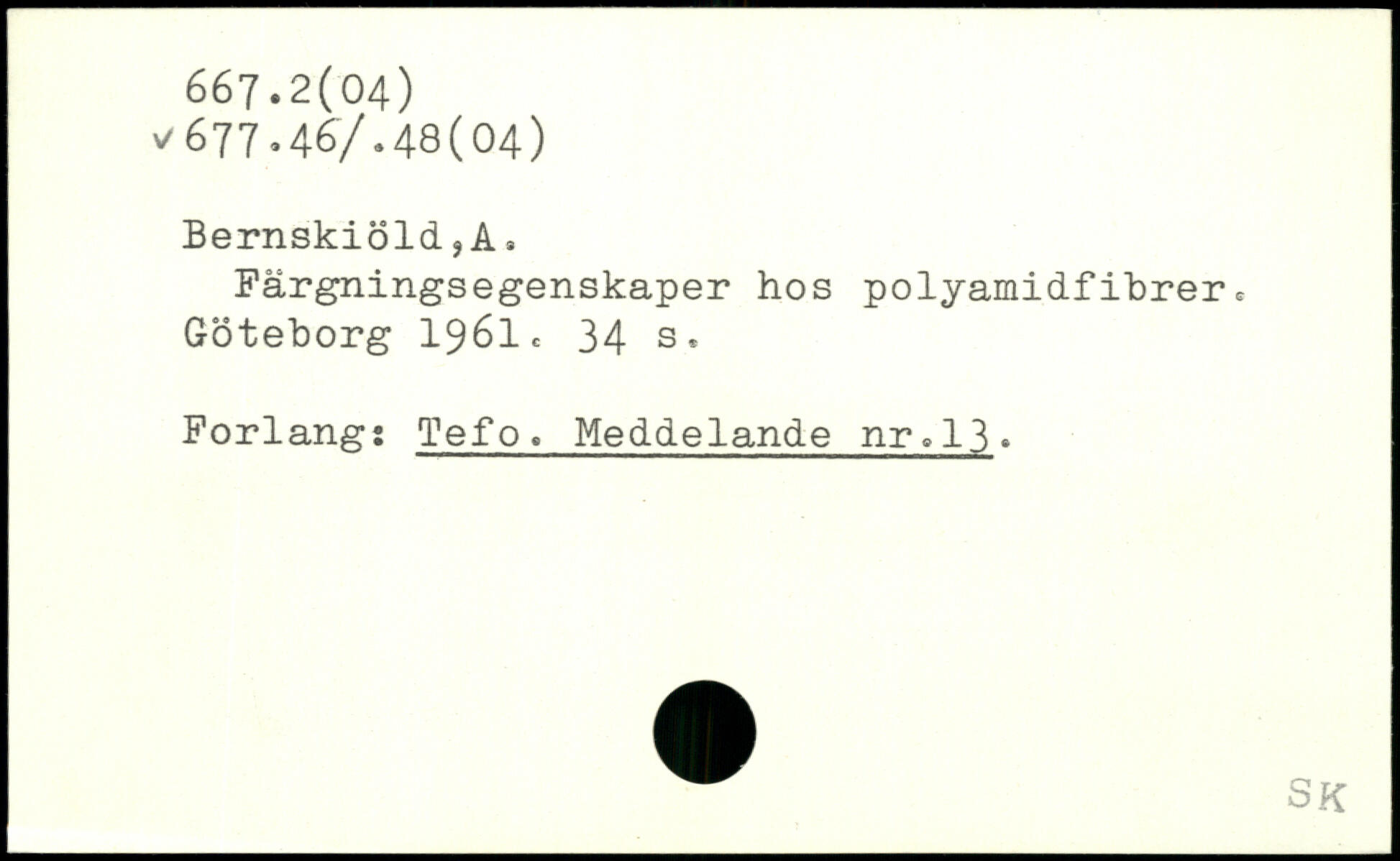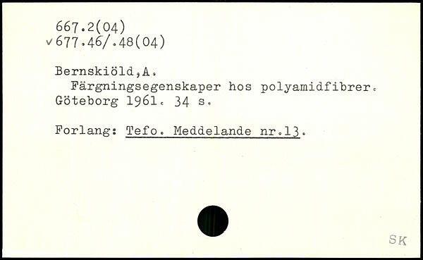 Färgningsegenskaper hos polyamidfibrer. Göteborg 1961