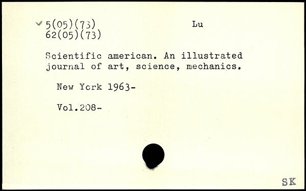 Scientific american. An illustrated journal of art, science, mechanics. New Ycrk 1963-