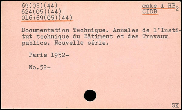 Documentation Technique, Annales de 1.Institut technique du Bâtiment et des Travaux publics. Nouvelle série.
