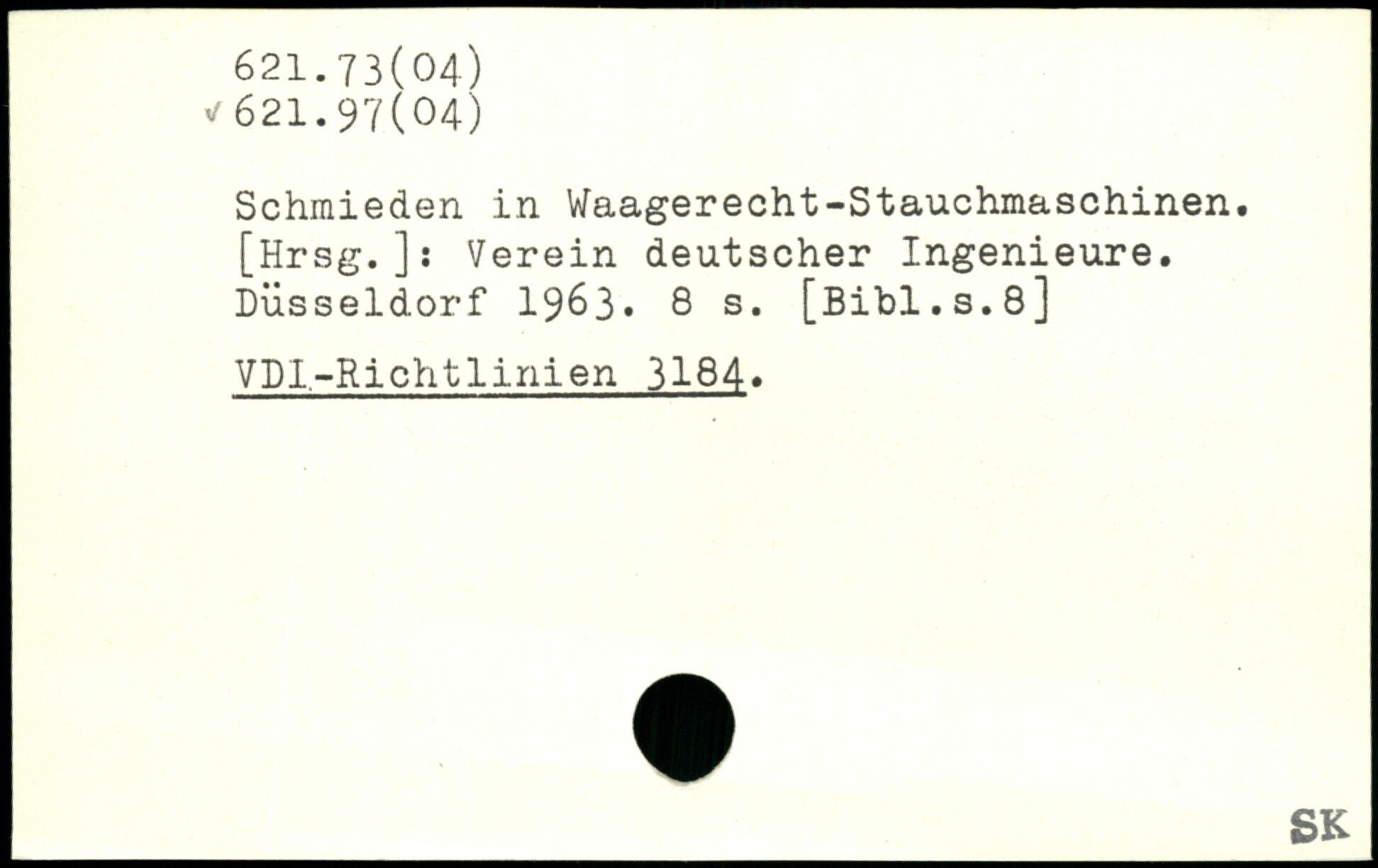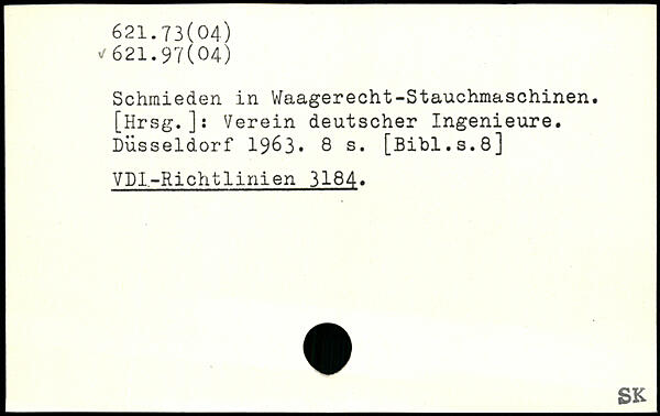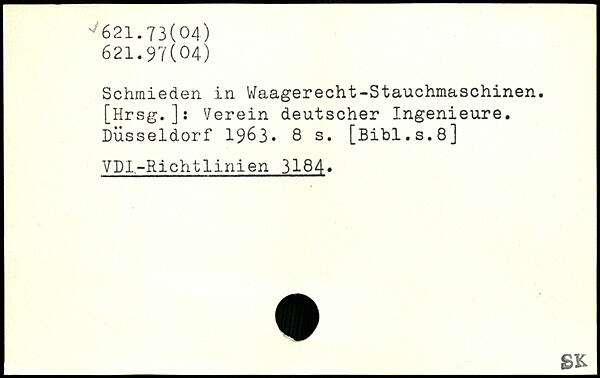 Schmieden in Waagerecht-Stauchmaschinen. [Hrsg.]: Verein deutscher Ingenieure. Düsseldorf 1963.