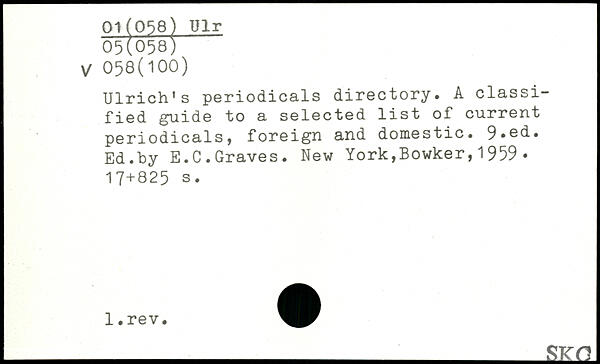 Ulrich’s periodicals directory. A classified guide to a selected list of current periodicals, foreign and domestic. 9,®d. Ed.by E.C.Graves.