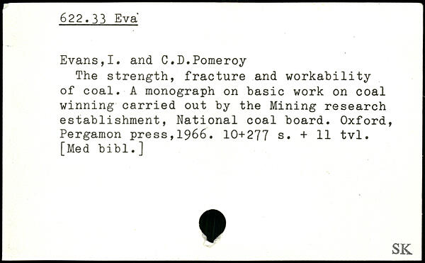 The strength, fracture and workability of coal. A monograph on basic work on coal winning carried out by the Mining research establishment, National coal board.