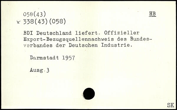 BDI Deutschland liefert. Offizieller Export-Bezugsquellennachweis des Bundesverbandes der Deutschen Industrie, Darmstadt 1957 Ausg 3