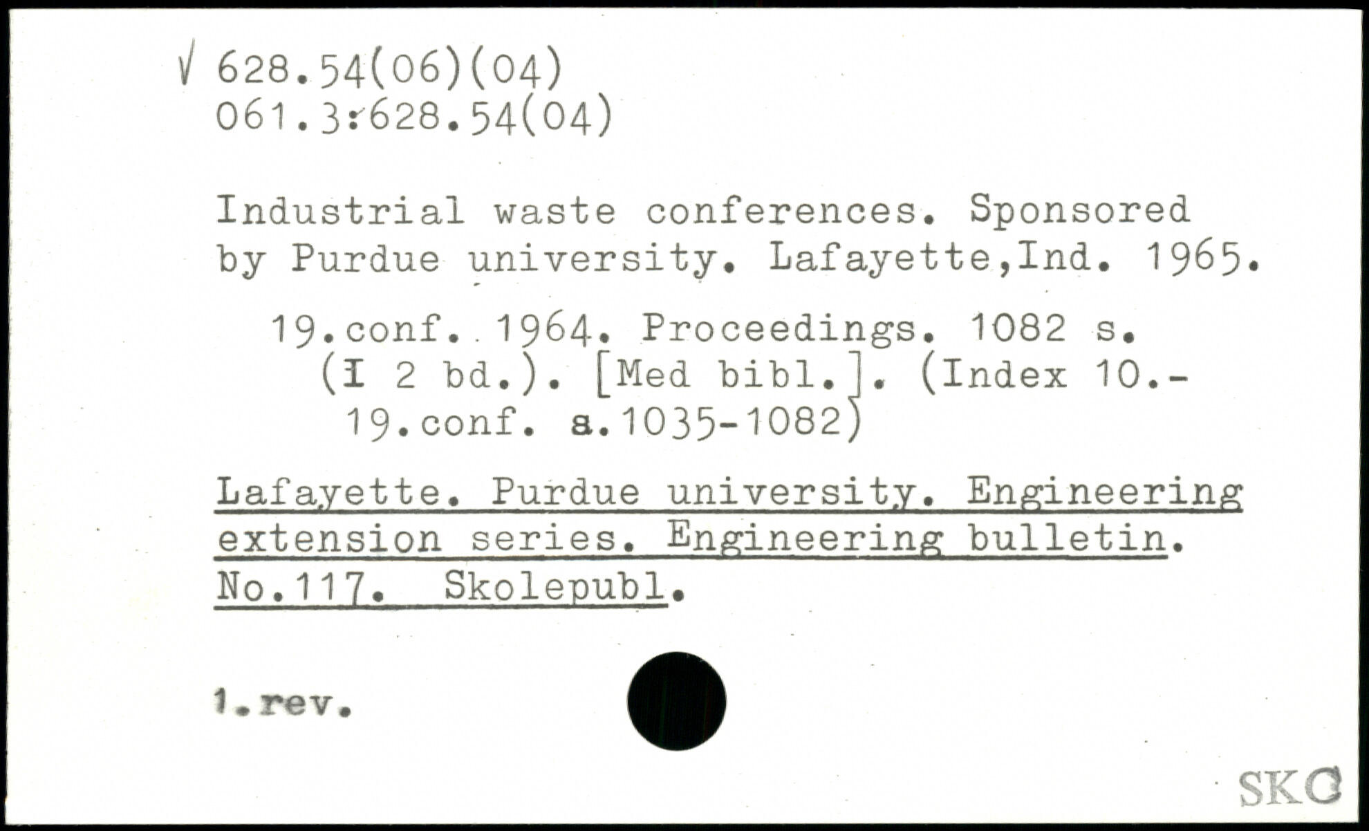 Industrial waste conferences. Sponsored by Purdue university. Lafayette,Ind. 1965, 19.conf..1964. Proceedings.