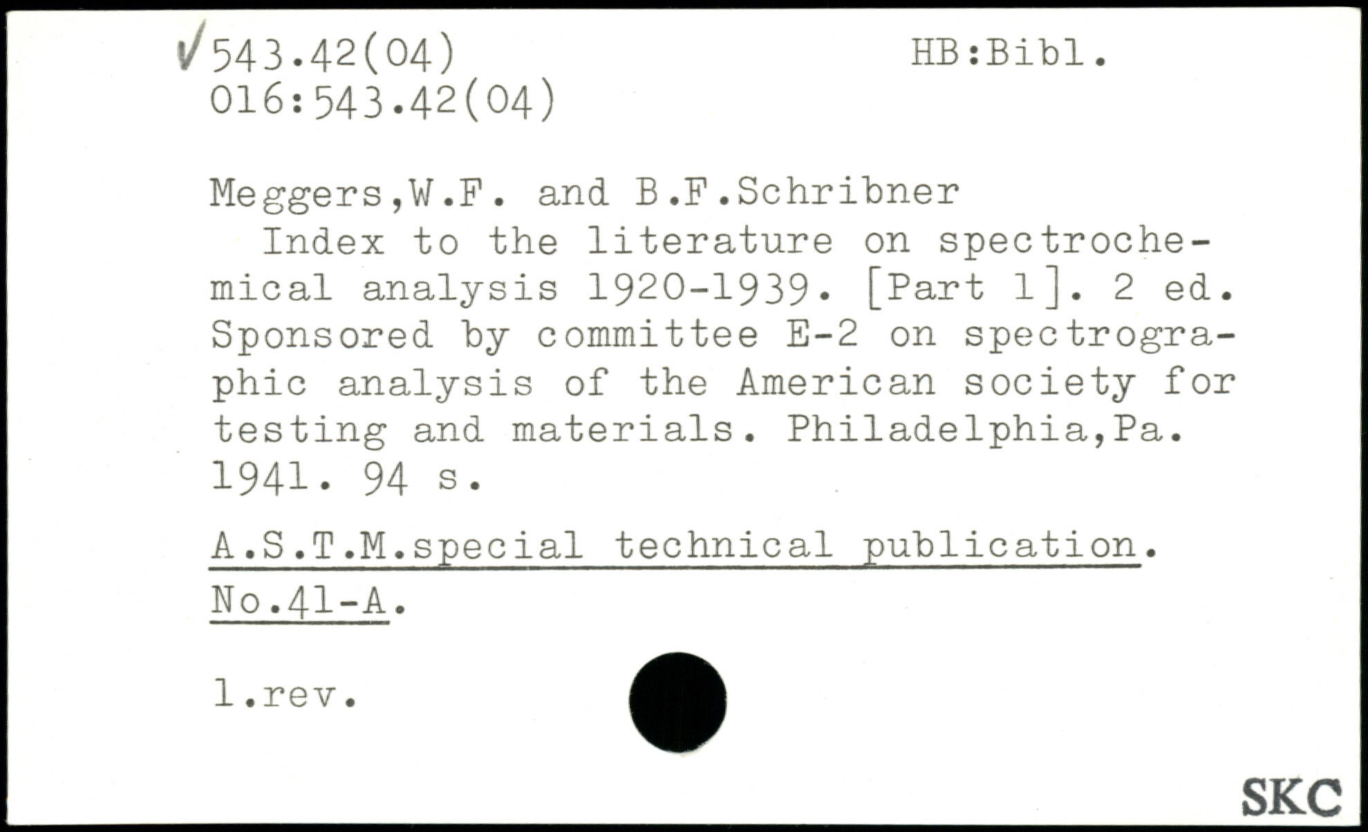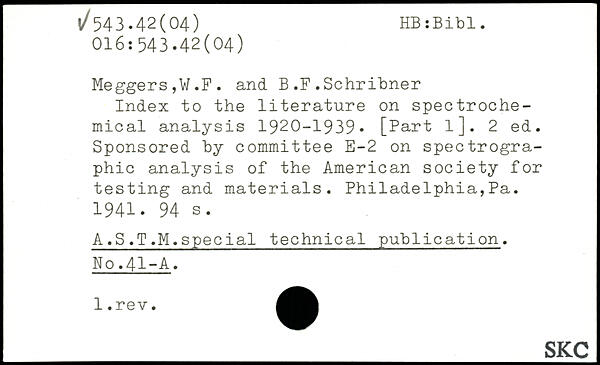 Index to the literature on spectroche-mical analysis 1920-1939. [Part l].
