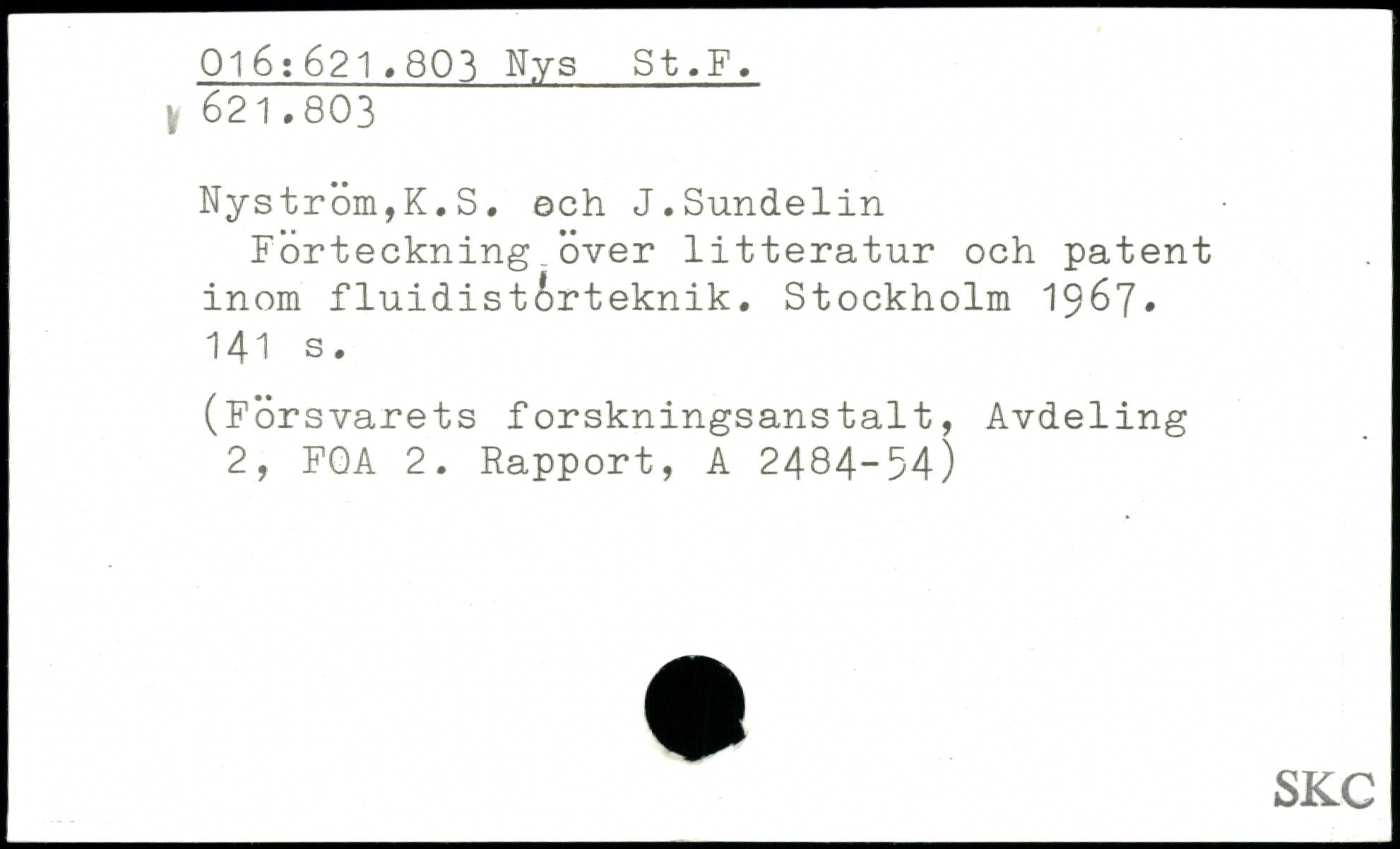 Förteckning.över litteratur och patent inom fluidist&rteknik.