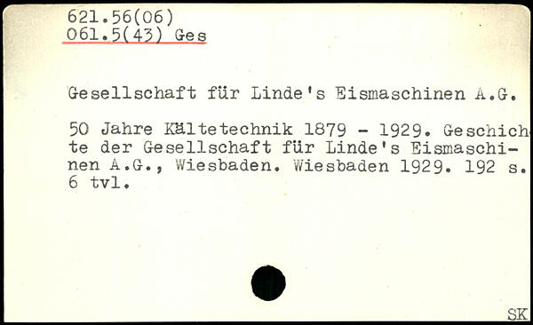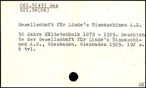 Gesellschaft für Linde's Eismaschinen A.G. 50 Jahre Kältetechnik 1879 - 1929. Geschieh te der Gesellschaft für Linde's Eismaschinen A.G., Wiesbaden. Wiesbaden 1929.