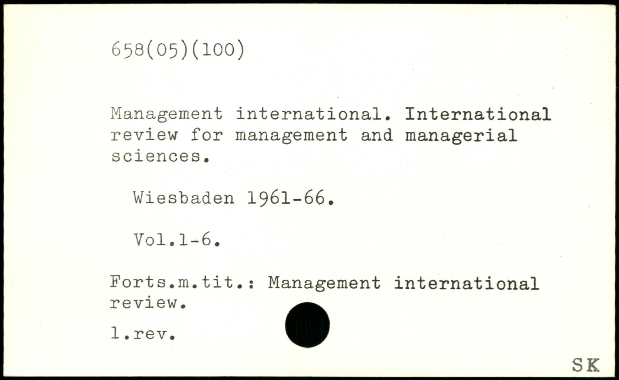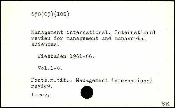 Management international. International review for management and managerial sciences. Wiesbaden 1961-66.