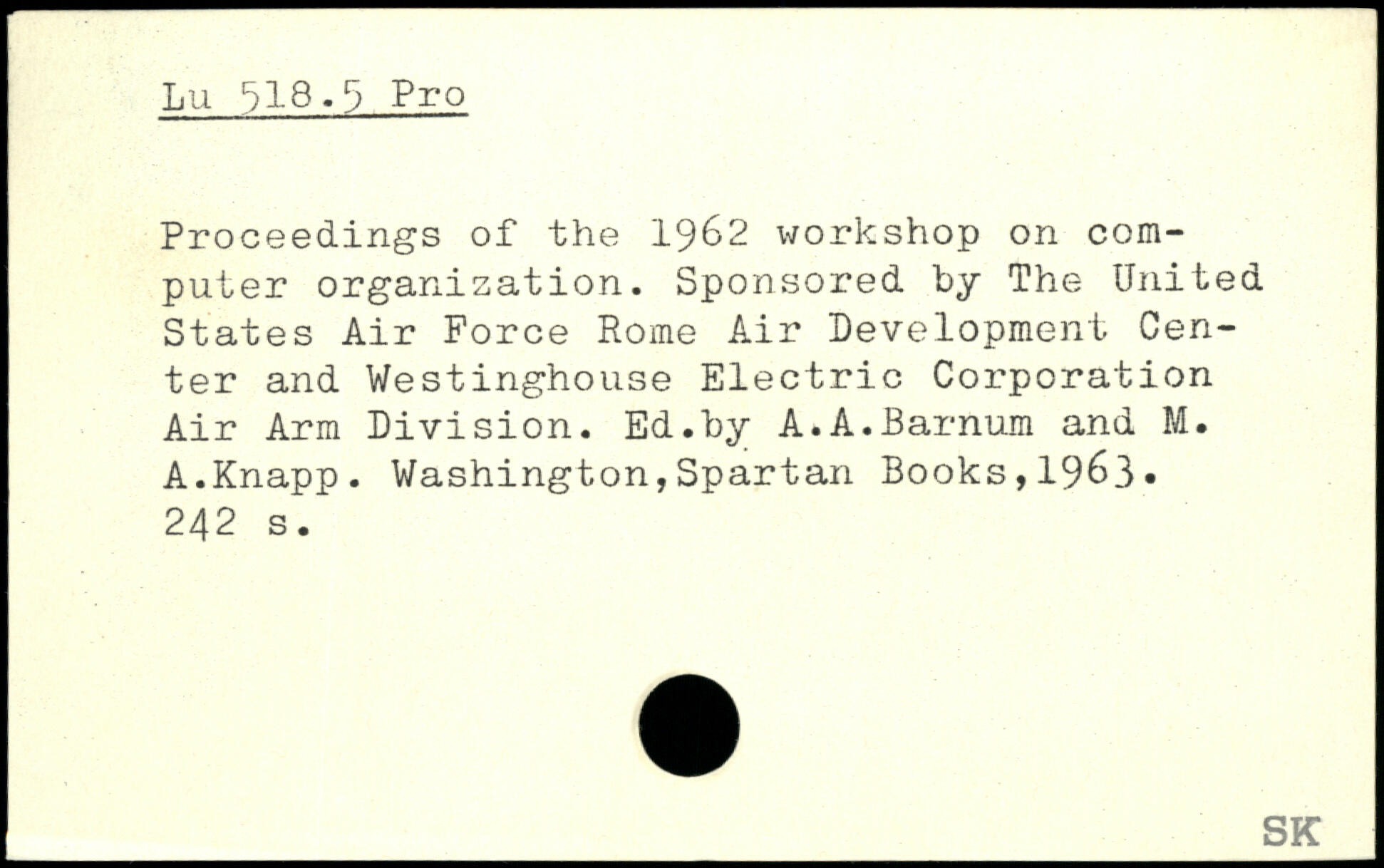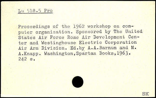 Proceedings of the 19&2 workshop on computer organisation. Sponsored by The United States Air Force Rome Air Development Center and Westinghouse Electric Corporation Air Arm Division. Ed.by A.A.Barnum and M. A.Knapp.