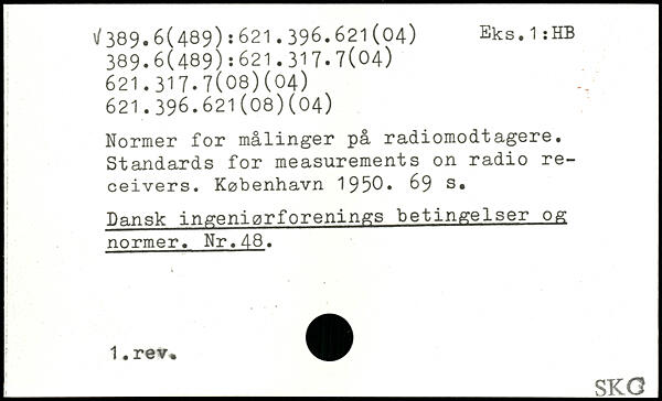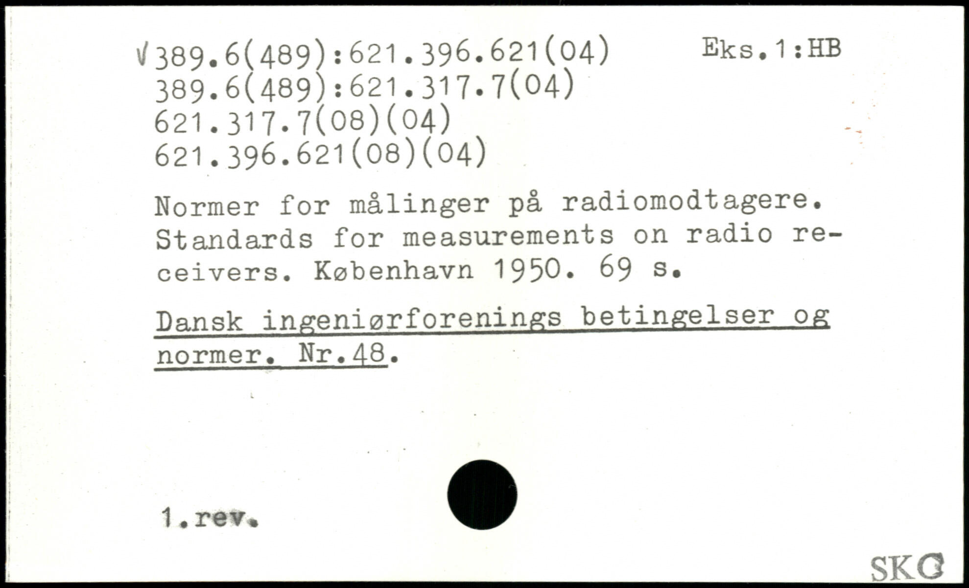 Normer for målinger på radiomodtagere. Standards for measurements on radio receivers.