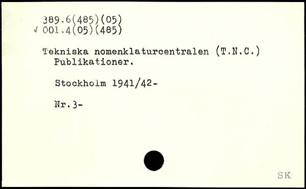 Tekniska nomenklaturcentralen (T.N.C.) Publikationer.