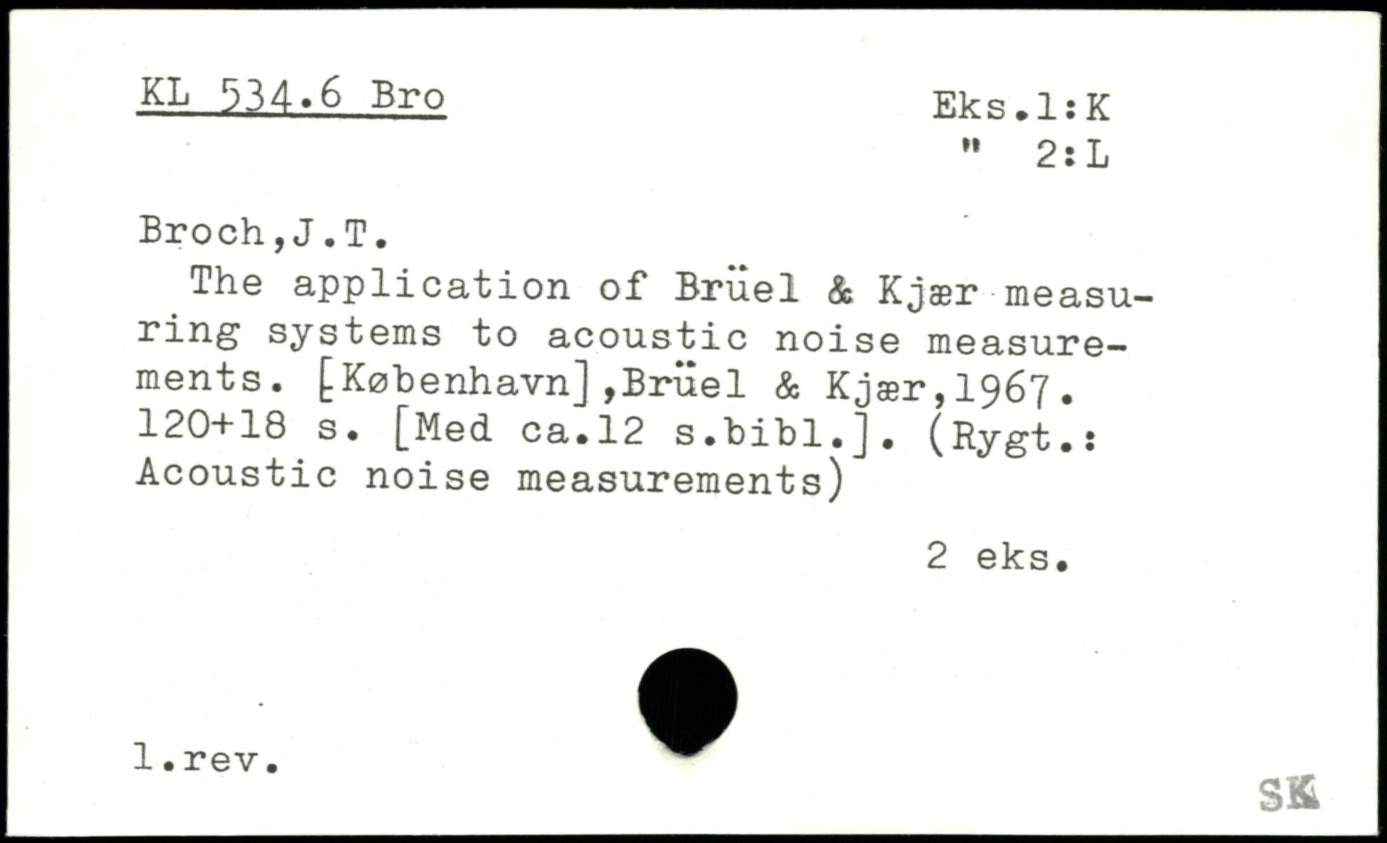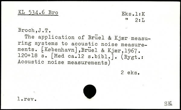 The application of Brilel & Kjær measuring systems to acoustic noise measurements. [København],Bruel & Kjær,1967.