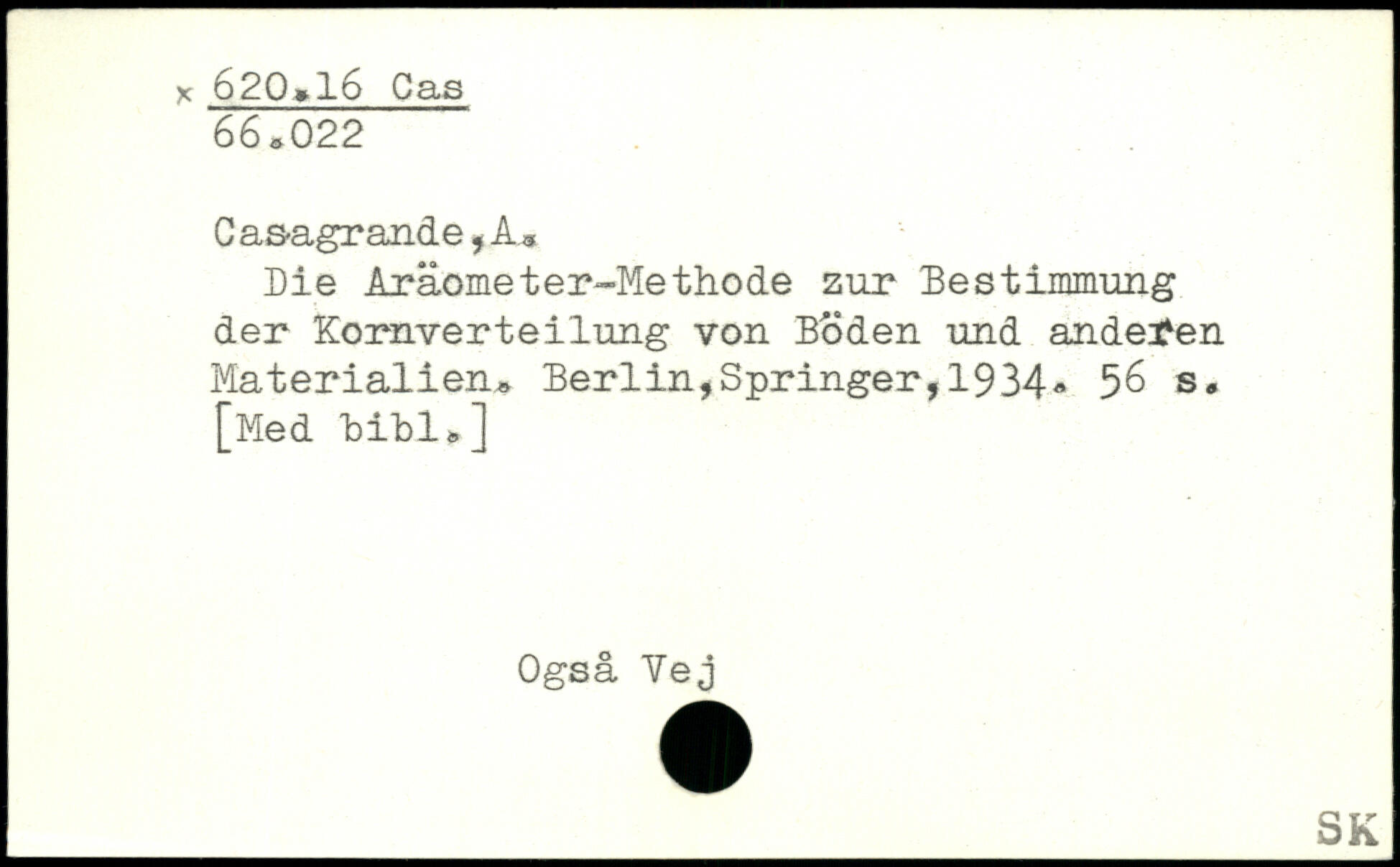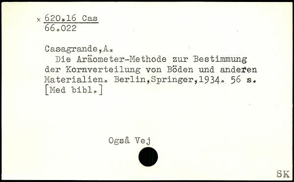 Cas-agrande,A, Me Aräometer-Methode zur Bestimmung der Kornverteilung von Boden und anderen Materialien.