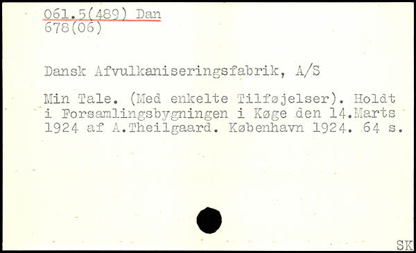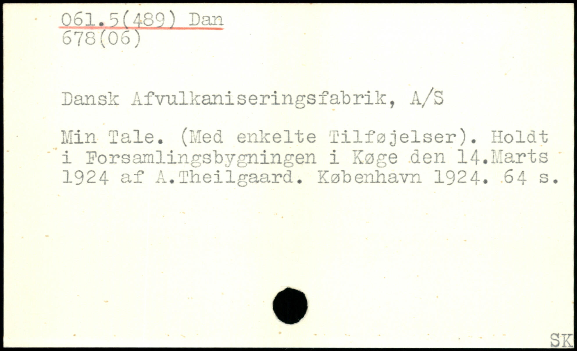 Dansk Afvulkaniseringsfabrik, A/S Min Tale. (Med enkelte Tilføjelser). Holdt i Porsamlingsbygningen i Køge den 14.Marts 1924 af A.Theiigaard.