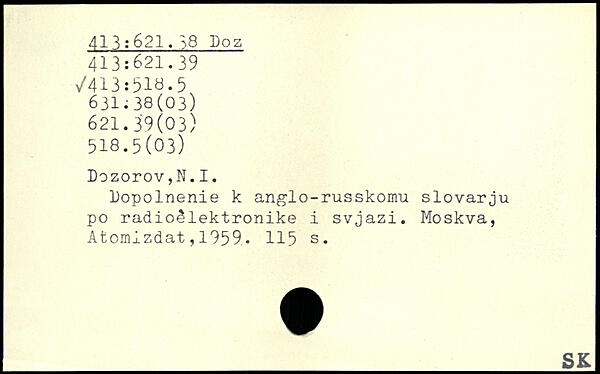 Dopolnenie k anglo-russkomu slovarju po radioélektronike i svjazi.