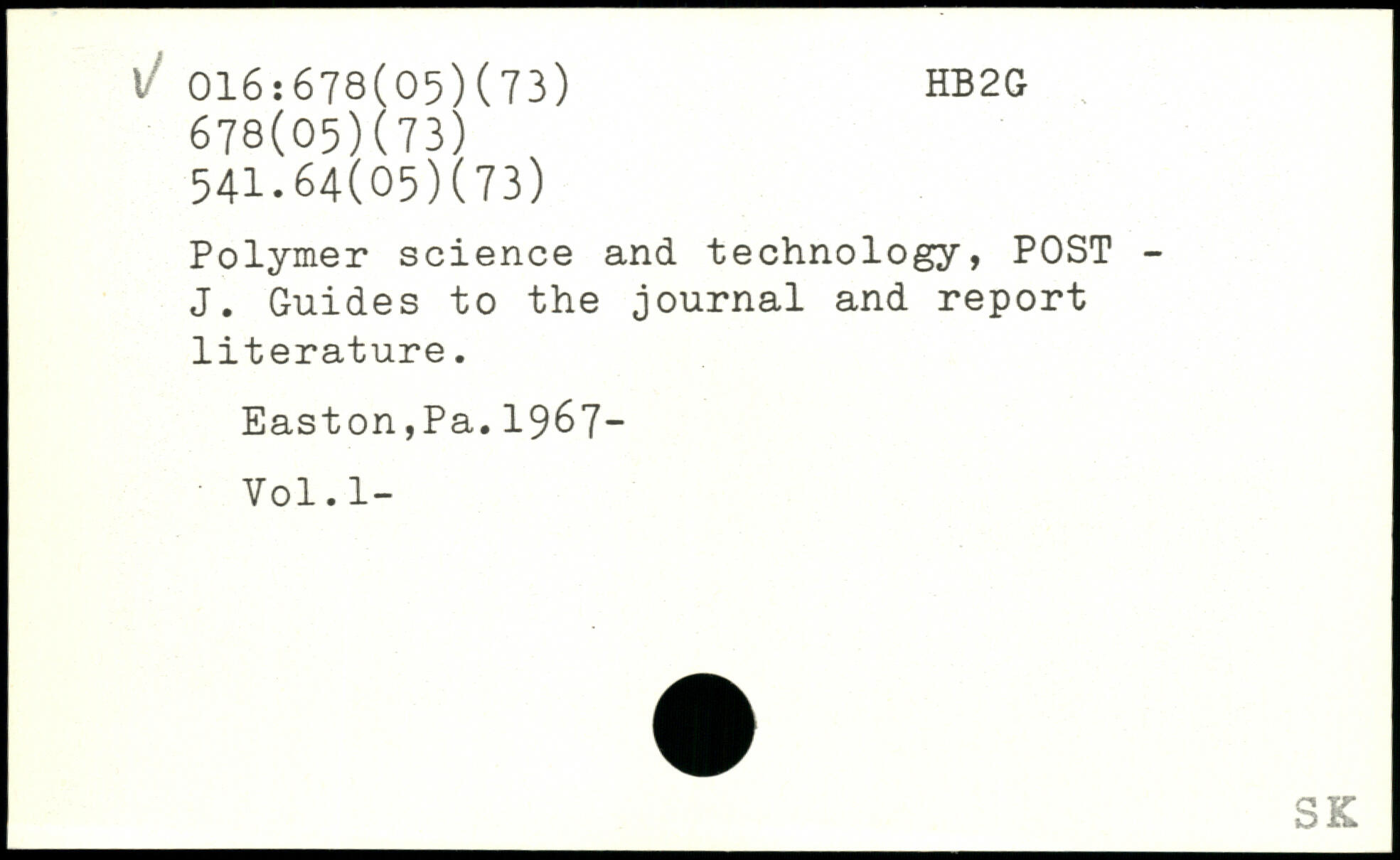 Polymer science and technology, POST -J. Guides to the journal and report literature. Easton,Pa.1967- Vol.l-