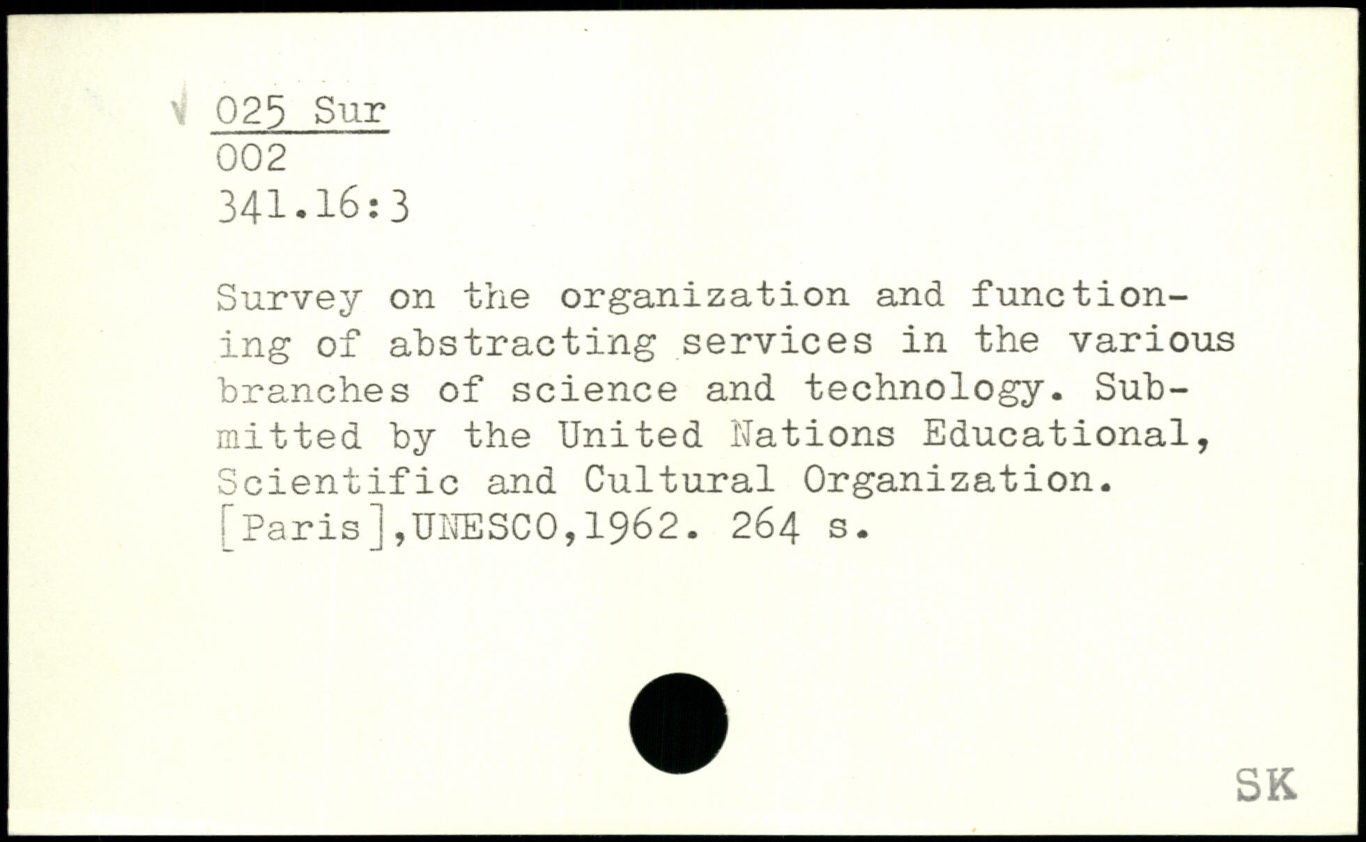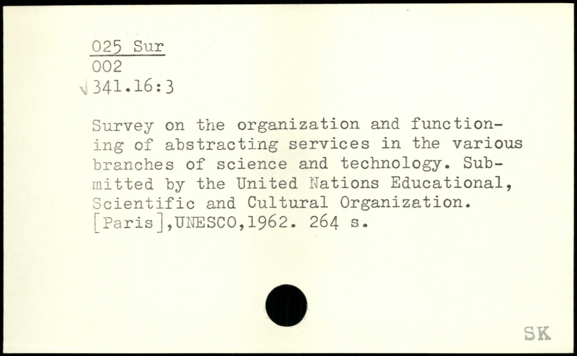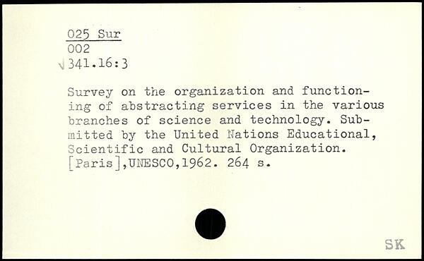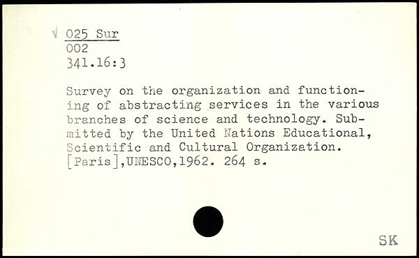 Survey on the organization and functioning of abstracting services in the various branches of science and technology. Submitted by the United Nations Educational, Scientific and Cultural Organization.