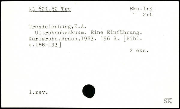 ; Trendelenburg,E.A. Ultrahochvakuum. Eine Einführung.