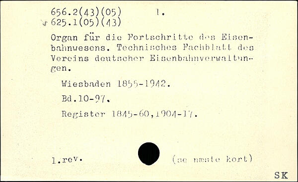 Organ für die ForL schr i 11 c d es Ei sen-bahnwesons. Technisches Fachblatt, des Vered ns deutscher E i senbahnvorwaltungen. Wiesbaden 18 b b -19 4 9.