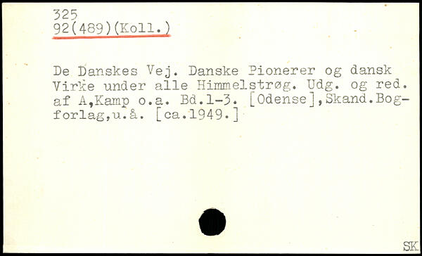 De Danskes Vej. Danske Pionerer og dansk Virke under alle Hiimn el strøg. Udg. og red. af A,Kamp o.a.