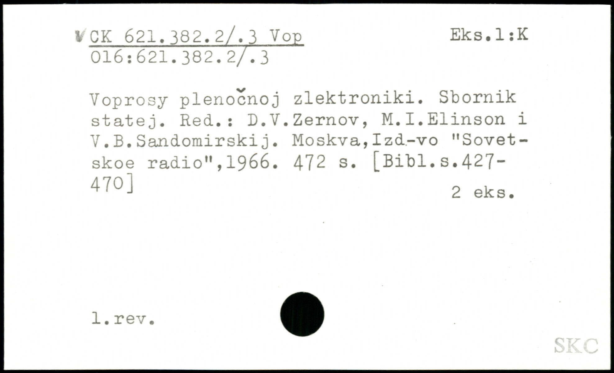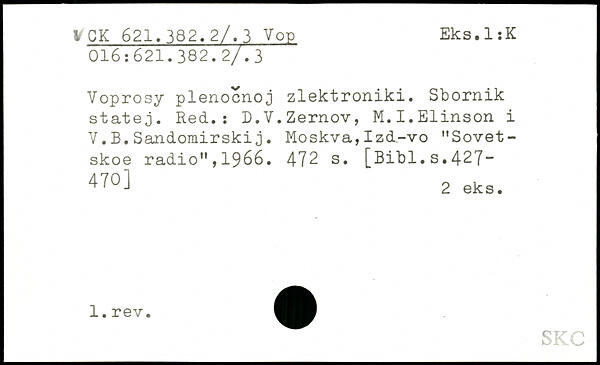 Voprosy plenocnoj zlektroniki. Sbornik statej. Red.; D.V.Zernov, M.I.Elinson i V.B.Sandomirskij. Moskva, Izd.-vo "Sovet-skoe radio",1966.