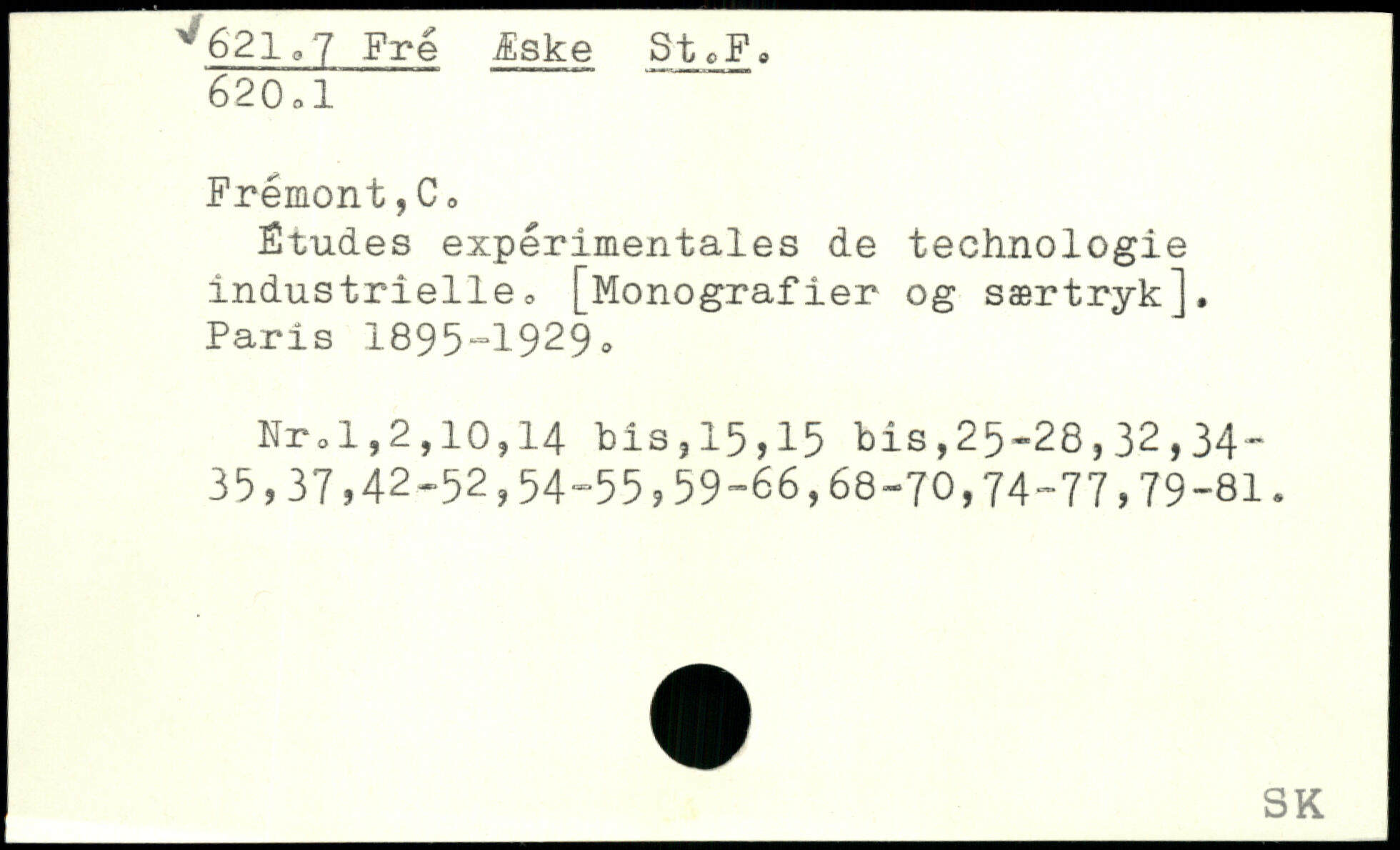 Études expérimentales de technologie industrielle, [Monografier og særtryk]