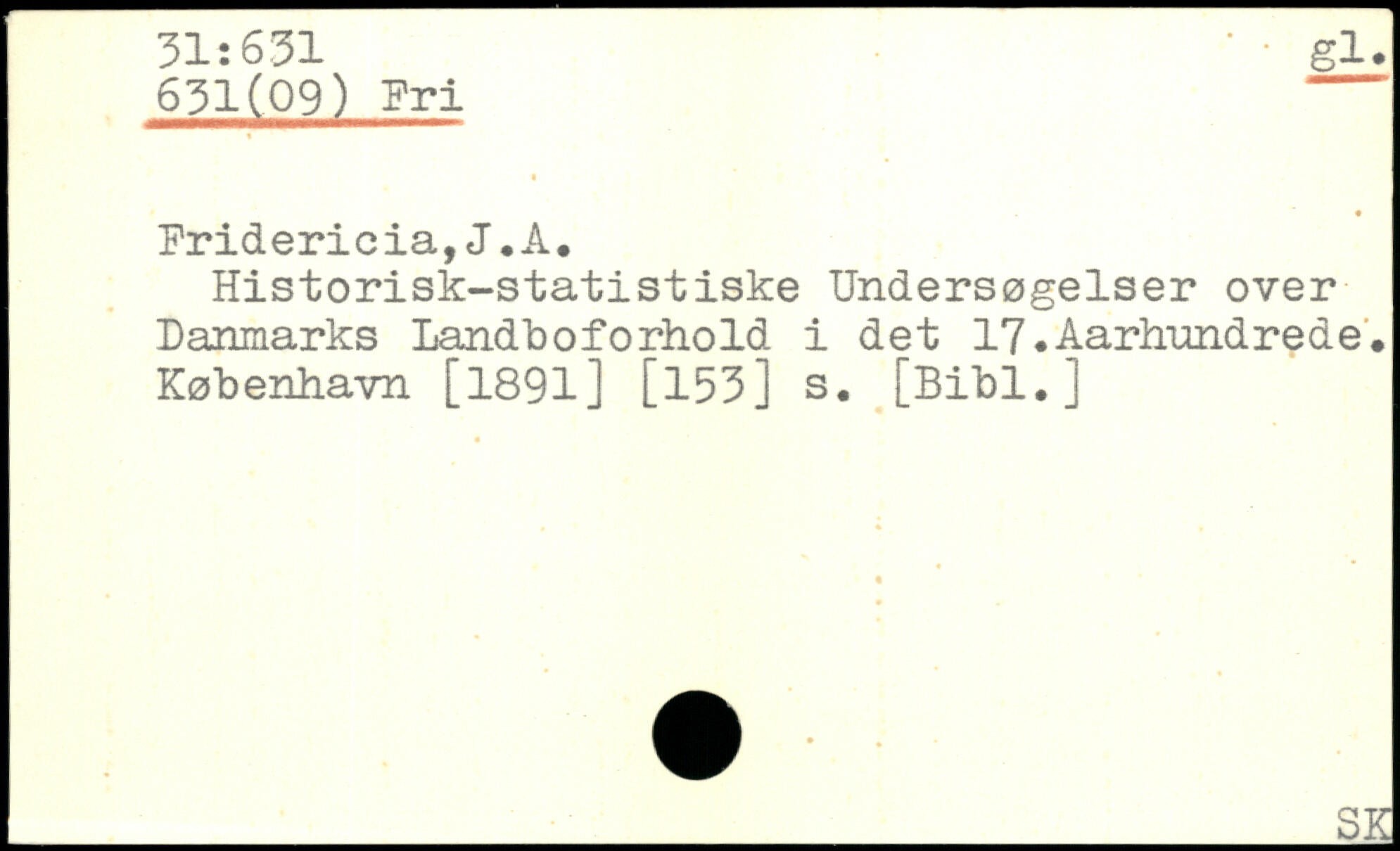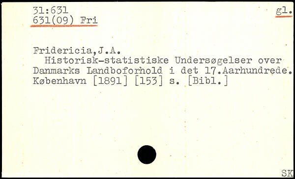 gi. 631(09) Fri Friderieia,J.A. Historisk-statistiske Undersøgelser over Danmarks Landboforhold i det 17.Aarhundrede.
