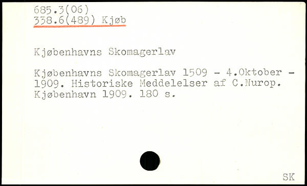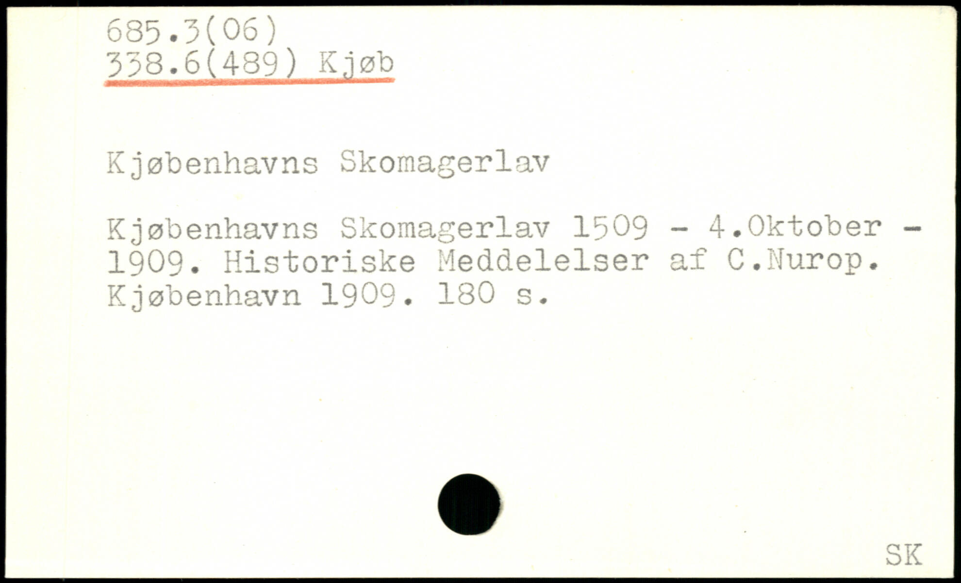 Kjøbenhavns Skomagerlav 1509 - 4.Oktober -1909. Historiske Meddelelser af C.Nurop. Kjøbenhavn 1909.