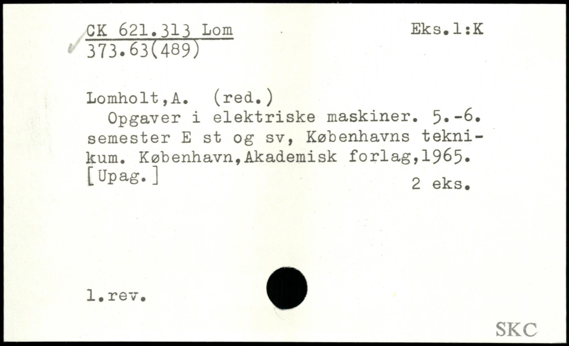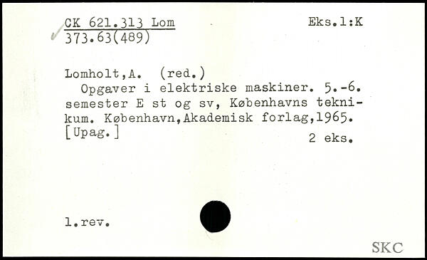 Opgaver i elektriske maskiner. 5,-6, semester E st og sv, Københavns teknikum.