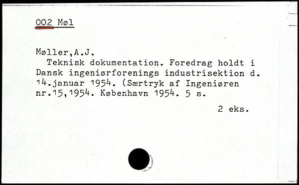 Teknisk dokumentation. Foredrag holdt i Dansk ingeniørforenings industrisektion d. ^4.januar 195^- (Særtryk af Ingeniøren nr.1195^. København 195^-