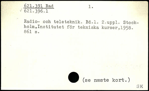 Radio- och teletekniko Bd,lo 2nuppl. Stockholm,Institutet för tekniska kurser91958o 86l So