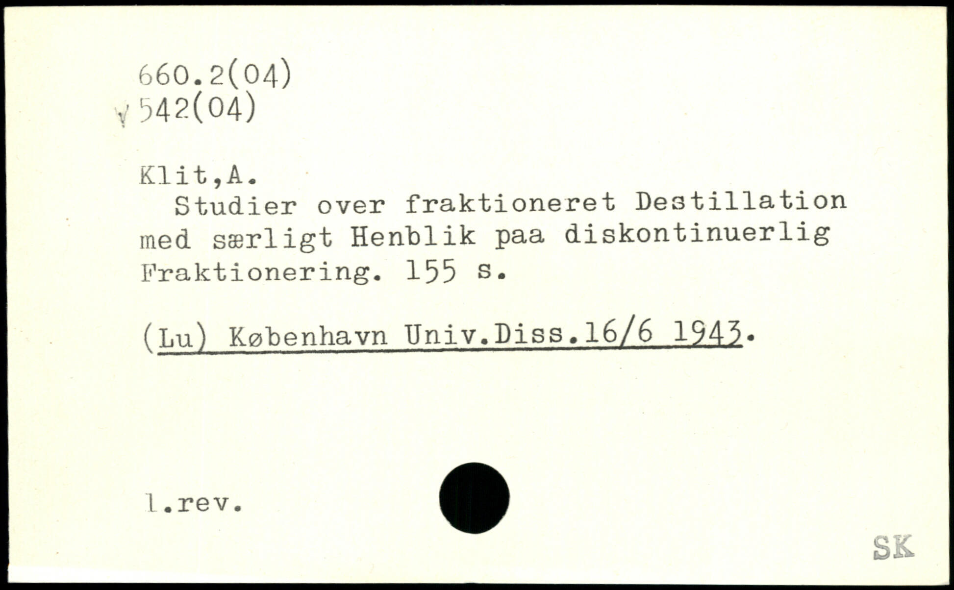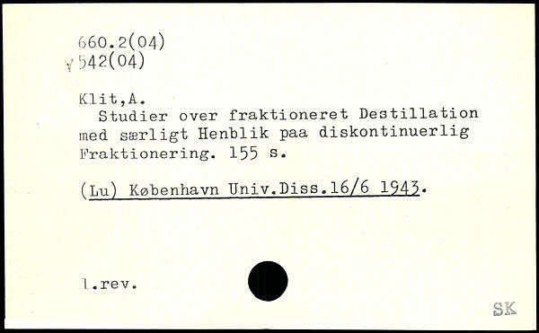 Studier over fraktioneret Destillation med særligt Henblik paa diskontinuerlig Fraktionering.