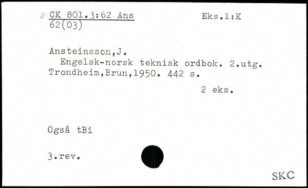 Engelsk-norsk teknisk ordbok. 2.utg.