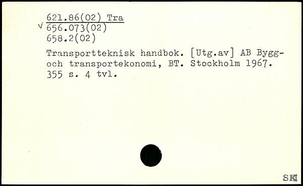 Transportteknisk handbok. [Utg.av] AB Bygg-och transportekonomi, BT.