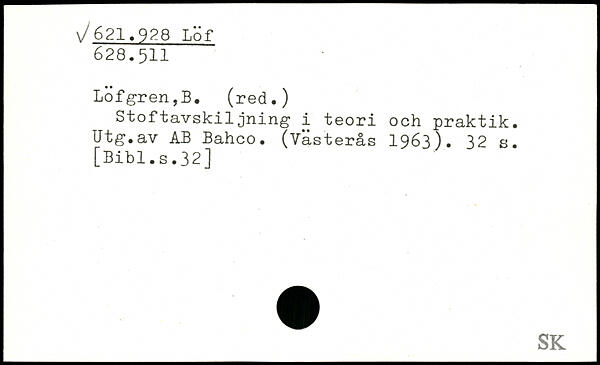 Stoftavskiljning i teori och praktik. Utg.av AB Bahco. (Västerås 1963).