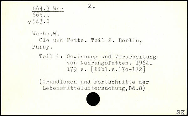 Oie und Fette. Teil 2. Berlin, P arey. Teil 2: Gewinnung und Verarbeitung von Nahrungsfetten. 1964. 179 a. [.Bibi.s.17o-172]