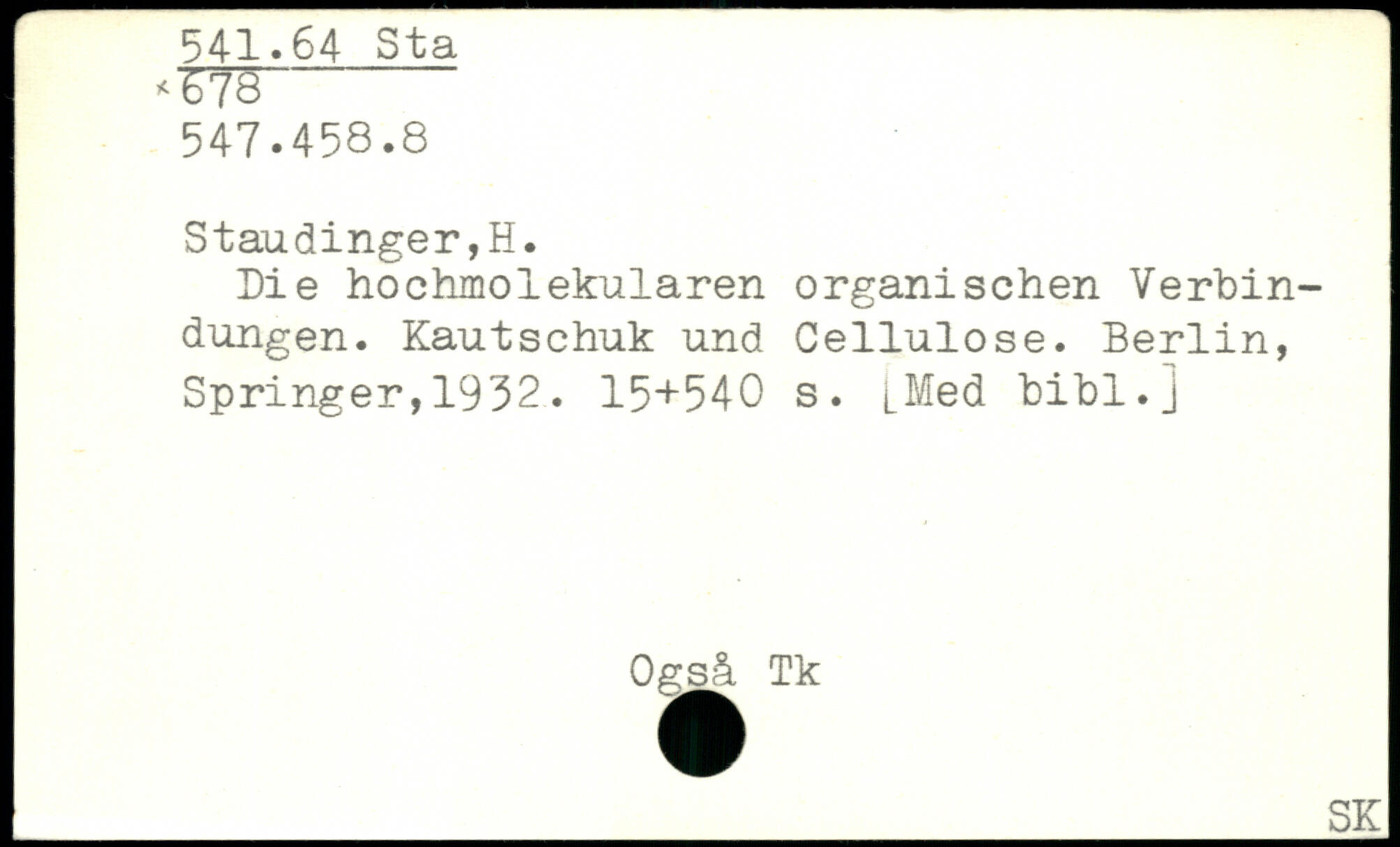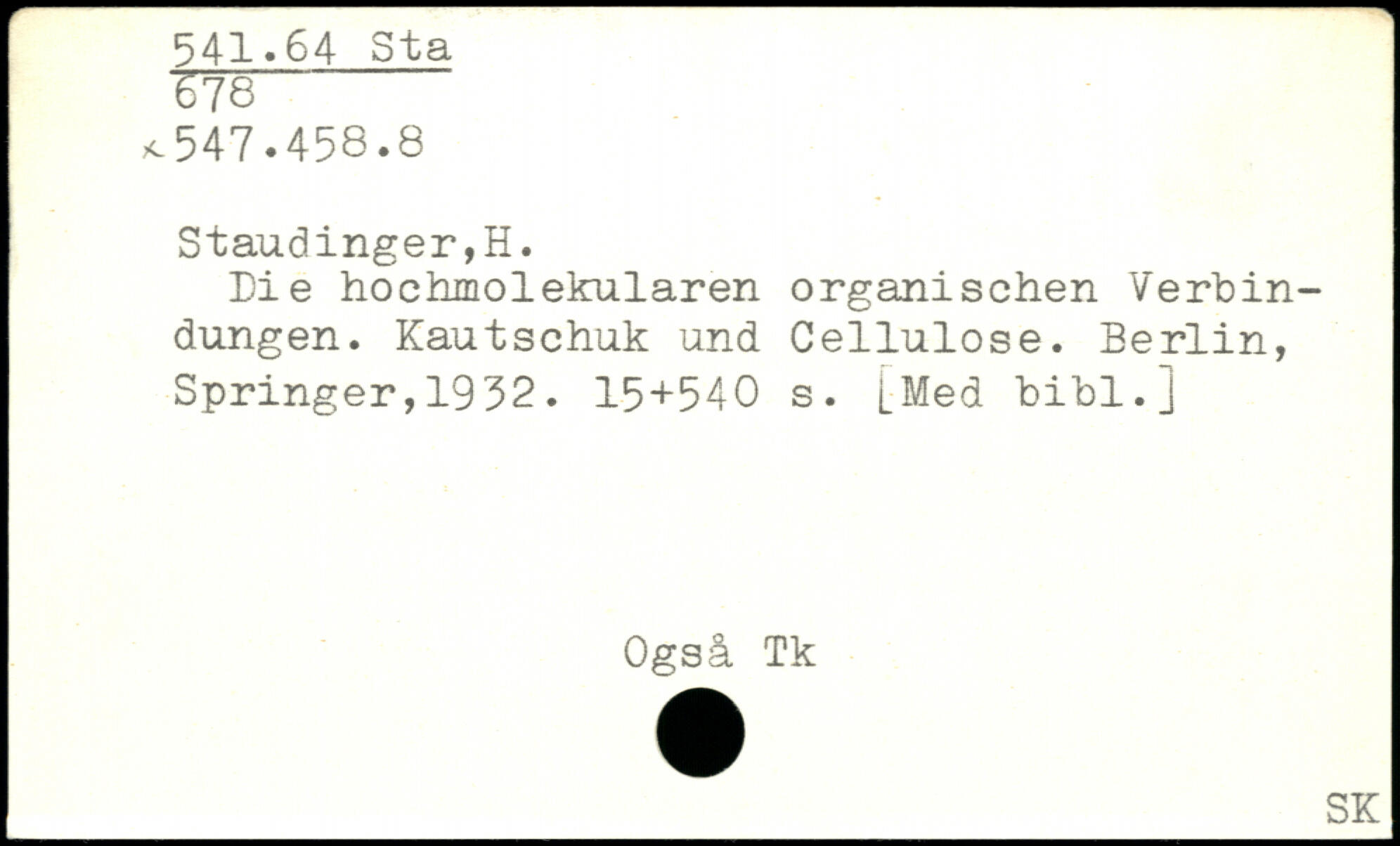 Die hochmolekularen organischen Verbindungen. Kautschuk und Cellulose.