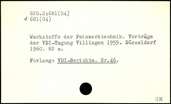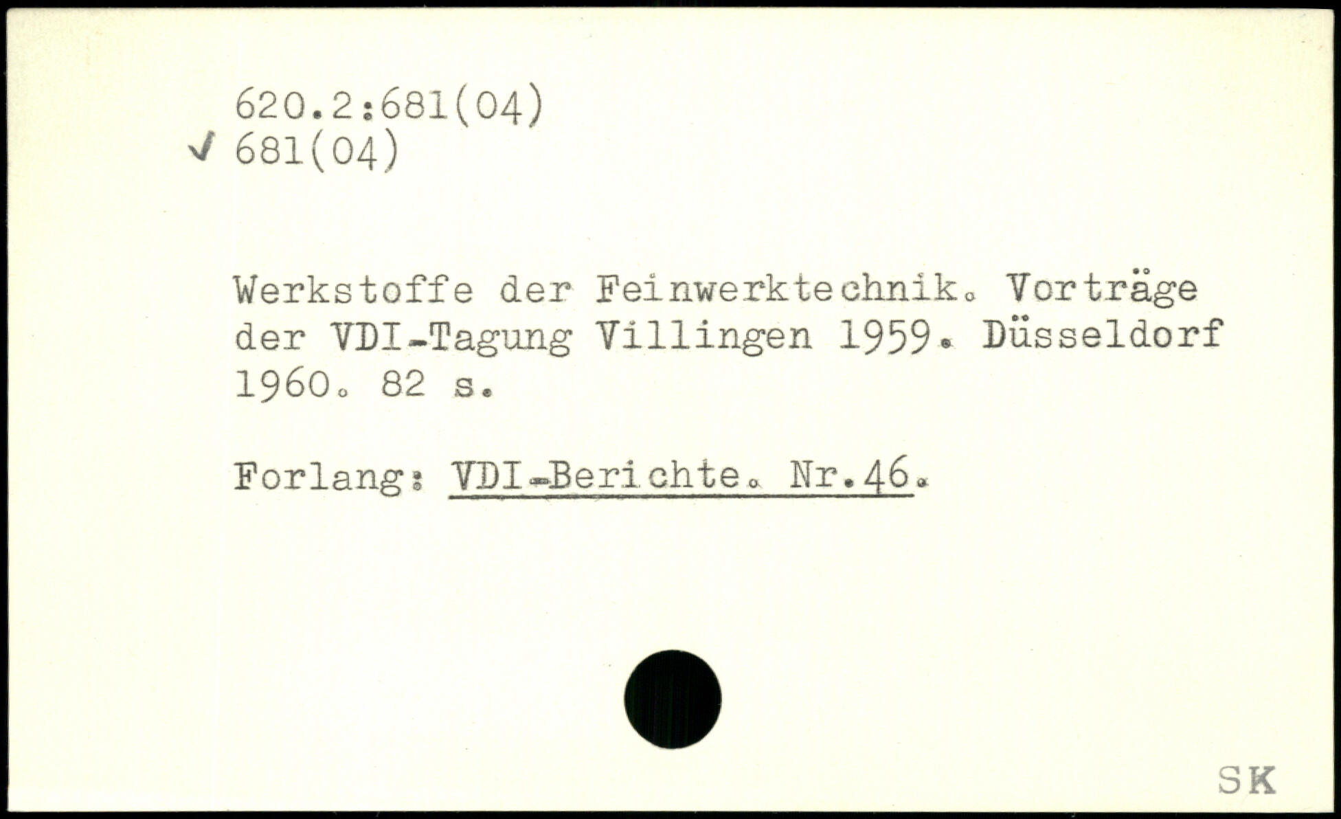 Werkstoffe der Feinwerkteehnik, Vorträge der VDI-Tagung V1111ngen 1959, Düsseldorf 1960