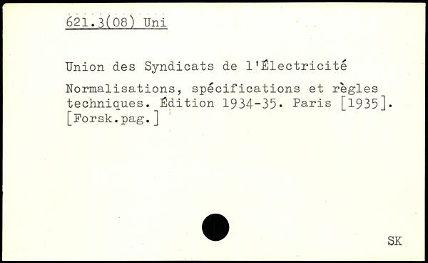 Union des Syndicats de l’Électricité Normalisations, spécifications et règles techniques. Édition 1934-35